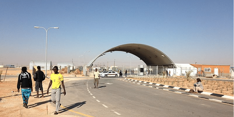 Image : African Asylum seekers imprisoned in Holot « open » prison exiting the facility, December 2013, By Hagits – Own work, CC BY-SA 4.0